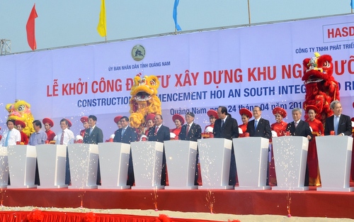 (ĐCSVN) - Sáng 24/4, tại Quảng Nam, Thủ tướng Nguyễn Xuân Phúc đã đến dự và phát lệnh Khởi công xây dựng dự án Khu nghỉ dưỡng Nam Hội An. Đây là dự án liên kết giữa Tập đoàn VinaCapital và Tập đoàn Gold Yield Enterprises với tổng vốn đầu tư gần 4 tỷ USD.