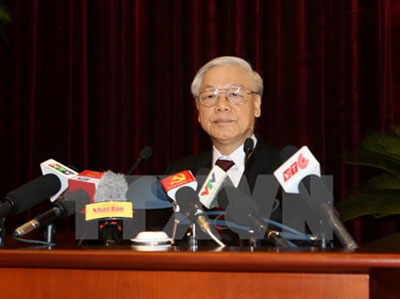 Tổng Bí thư Nguyễn Phú Trọng phát biểu bế mạc Hội nghị (Ảnh: TTXVN)