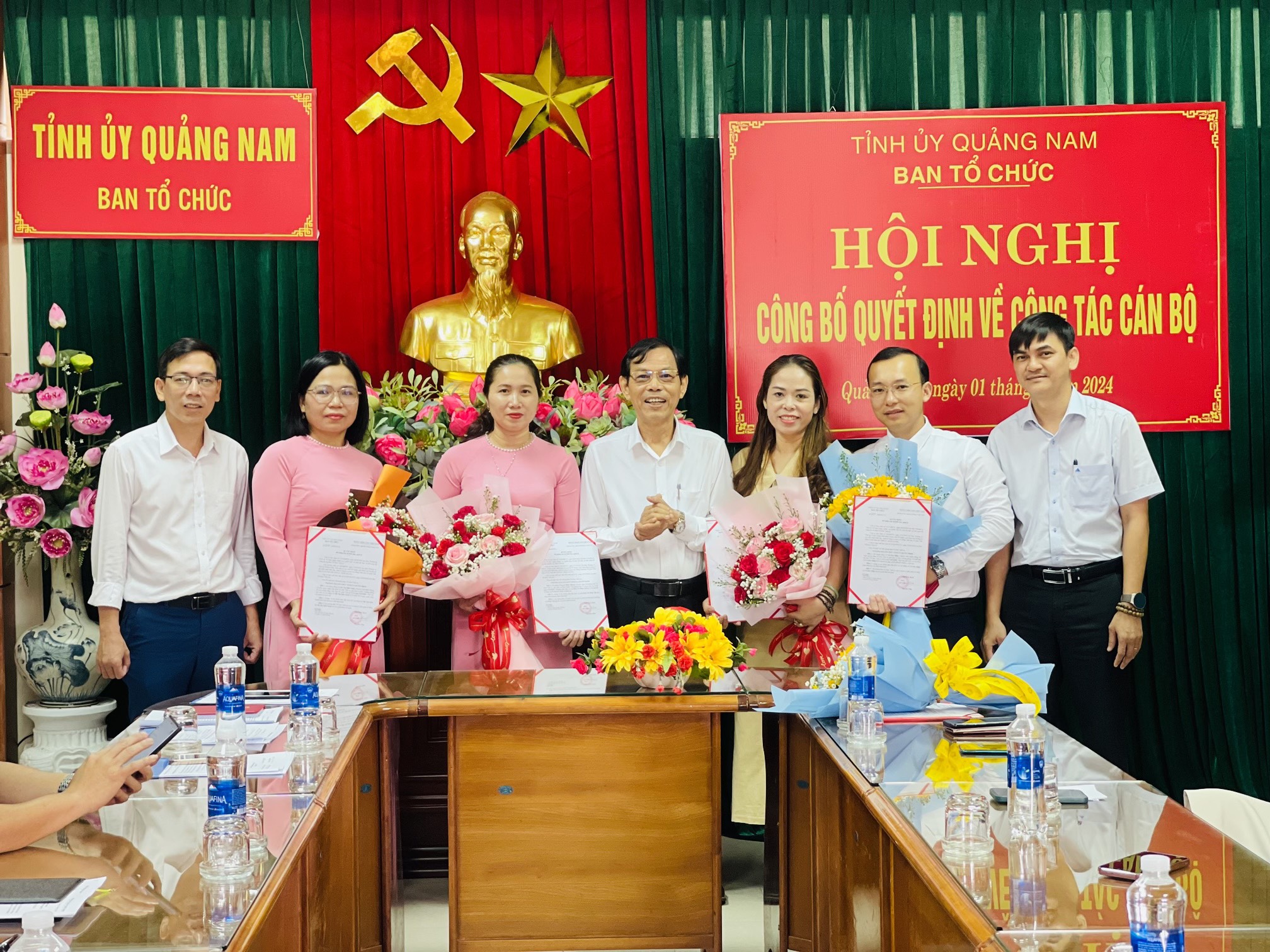 Tại buổi lễ, đồng chí Nguyễn Thành Tuấn - Phó Chánh Văn phòng Ban Tổ chức Tỉnh ủy công bố các quyết định của Trưởng Ban Tổ chức Tỉnh ủy về việc bổ nhiệm lại và bổ nhiệm cán bộ lãnh đạo, quản lý. Theo đó, bổ nhiệm lại đồng chí Trần Thanh Thu giữ chức vụ Trưởng phòng Tổ chức đảng, đảng viên; đồng chí Hồ Thị Kiều Oanh - Chi ủy viên, chuyên viên chính phòng Tổ chức đảng, đảng viên giữ chức Phó Trưởng phòng Tổ chức đảng, đảng viên; đồng chí Phan Thị Lệ - Chuyên viên Văn phòng Ban giữ chức vụ Phó Chánh Văn phòng Ban; đồng chí Lê Duy Hiệp - Chuyên viên chính phòng Tổ chức cán bộ giữ chức vụ Phó Trưởng phòng Tổ chức cán bộ và đồng chí Nguyễn Thị Thủy - Chuyên viên chính phòng Bảo vệ chính trị nội bộ giữ chức vụ Phó Trưởng phòng Bảo vệ chính trị nội bộ. Quyết định có hiệu lực từ ngày 01/4/2024, thời gian bổ nhiệm 05 năm.