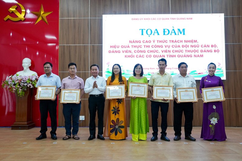 Phát biểu chỉ đạo tọa đàm, đồng chí Lê Văn Dũng, Phó Bí thư Thường trực Tỉnh ủy ghi nhận công tác chuẩn bị chu đáo và chủ đề mang tính thời sự mà Ban Thường vụ Đảng ủy Khối đã lựa chọn. Đồng chí thông tin khái quát, nhận đinh, đánh giá về công tác cán bộ và việc xử lý cán bộ vi phạm của cả nước nói chung và tỉnh Quảng Nam nói riêng cũng như nguyên nhân dẫn đến tình trạng sợ sai, né tránh, đùn đẩy trách nhiệm ở cán bộ, công chức, viên chức trong thời gian quá. Về nhiệm vụ, giải pháp khắc phục tình trạng nêu trên trong thời gian tới, đồng chí đề nghị Đảng bộ Khối: (1) Đẩy mạnh công tác tuyên truyền, vận động cán bộ, đảng viên, công chức, viên chức phát huy ý thức tự giác, làm tốt trách nhiệm của mỗi cá nhân; phòng, chống sự suy thoái về tư tưởng chính trị, đạo đức lối sống, tránh sa vào chủ nghĩa cá nhân. (2) Tăng cường công tác kiểm tra, giám sát, thanh tra nhằm kịp thời phát hiện, uốn nắn những biểu hiện sai trái, lệch lạc, vi phạm, đừng để sai phạm nhỏ tích tụ thành sai phạm lớn. (3) Làm tốt công tác cán bộ trên tất cả các khâu: quy hoạch, đào tạo, bồi dưỡng, đề bạt, bổ nhiệm; thực hiện nghiêm việc chuyển đổi vị trí công tác đối với một số chức danh theo Quy định số 455-QĐ/TU của Ban Thường vụ Tỉnh ủy; cương quyết không quy hoạch, đề bạt, bổ nhiệm đối với cán bộ sợ sai, đùn đẩy trách nhiệm. (4) Thực hiện tốt việc nêu gương và phải bảo vệ cán bộ. (5) Tập trung làm tốt công tác xây dựng, chỉnh đốn Đảng, xây dựng tổ chức thực sự trong sạch, vững mạnh; thường xuyên kiểm tra, giám sát những nơi có vấn đề, nội bộ mất đoàn kết... dựa trên 5 phương thức và 5 nguyên tắc lãnh đạo của Đảng.