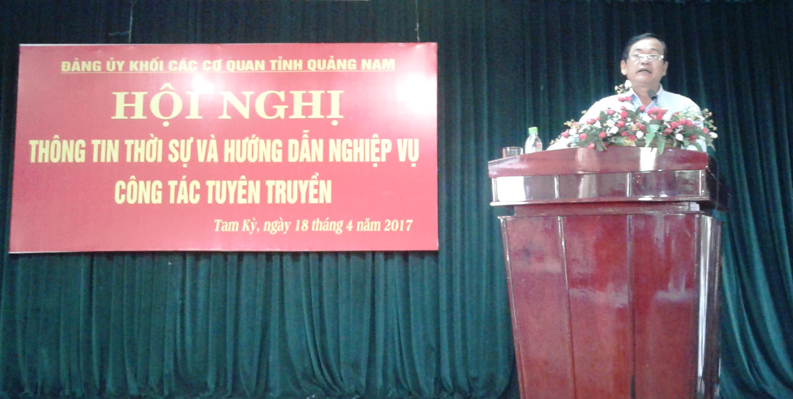 Hội nghị được nghe đồng chí Trần Khắc Thắng - Phó Trưởng ban Thường trực Ban Tuyên giáo Tỉnh ủy thông tin một số tình hình về đất nước Campuchia và quan hệ hai nước Việt Nam - Campuchia trong thời gian gần đây; vấn đề Biển Đông và chiến lược Biển Đông của Trung Quốc.