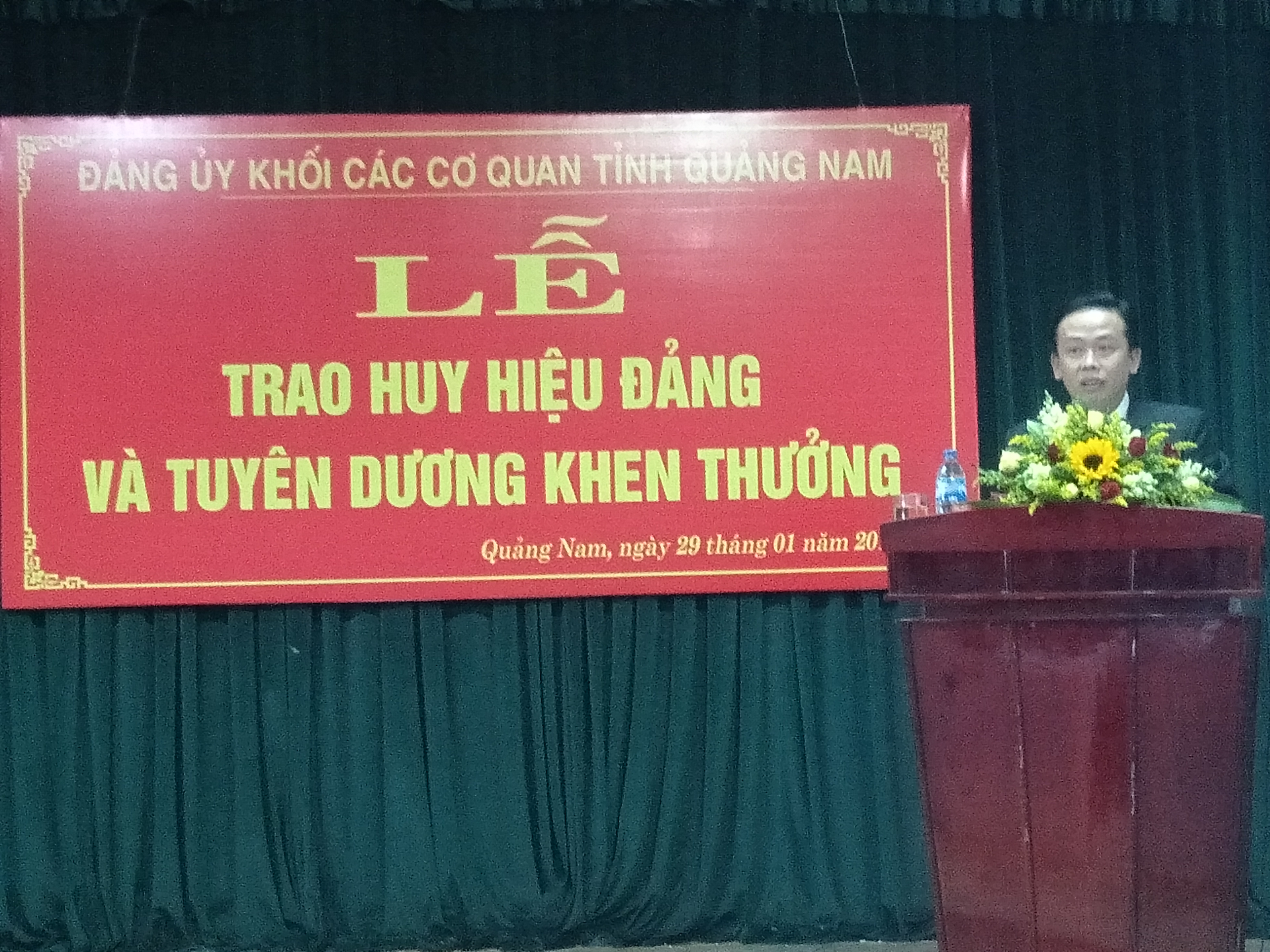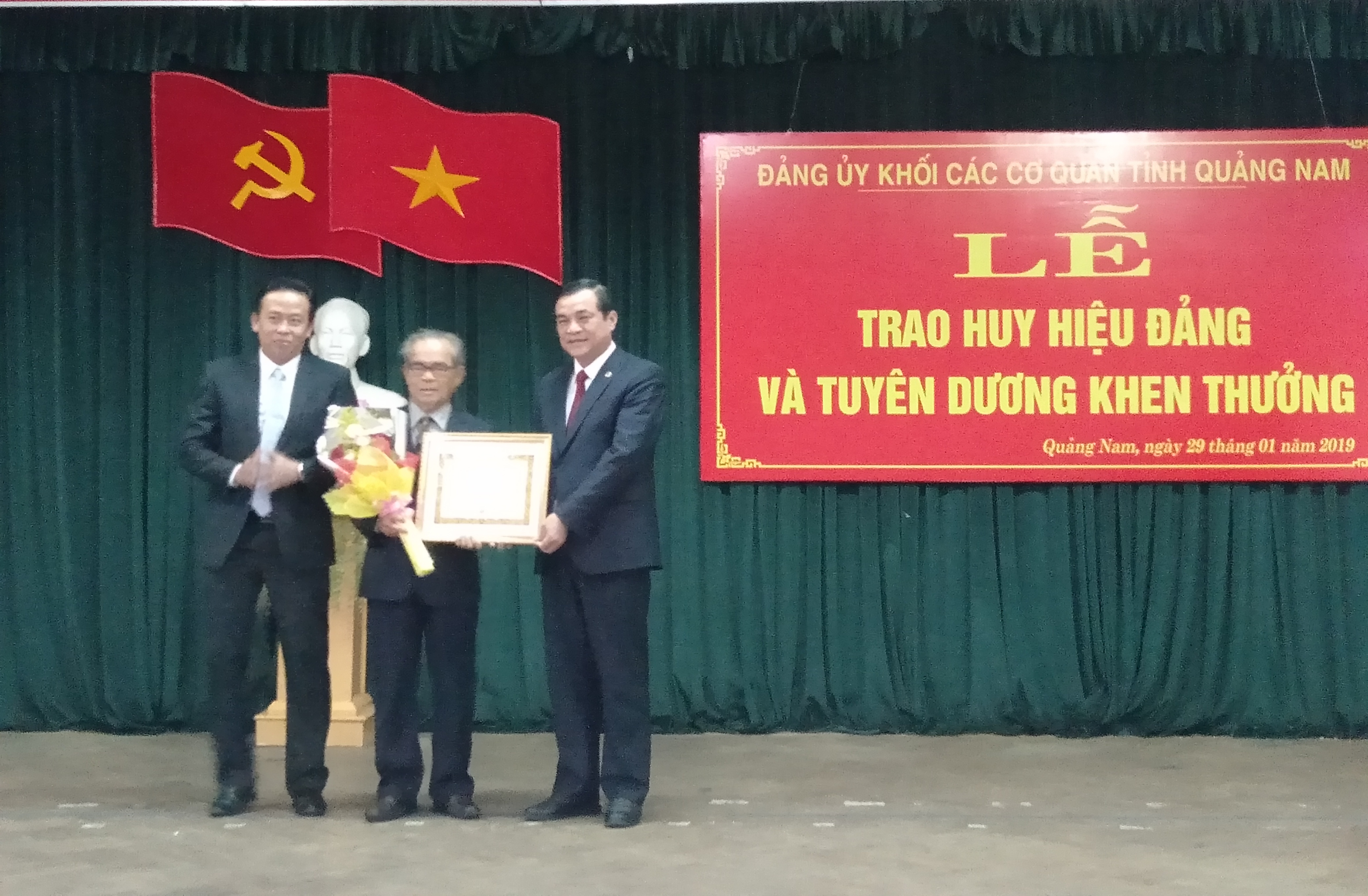 Tại buổi lễ, thay mặt Ban Thường vụ Tỉnh ủy, đồng chí Phan Việt Cường - Ủy viên Trung ương Đảng - Bí thư Tỉnh ủy đã trao Huy hiệu 55 tuổi Đảng cho đồng chí Hoàng Châu Sinh (đảng viên Đảng bộ Văn phòng UBND tỉnh); đồng chí Đinh Văn Thu - Phó Bí thư Tỉnh ủy - Chủ tịch UBND tỉnh đã trao Huy hiệu 30 năm tuổi Đảng cho 09 đồng chí hiện đang sinh hoạt, công tác ở các tổ chức cơ sở đảng trực thuộc Đảng bộ Khối.