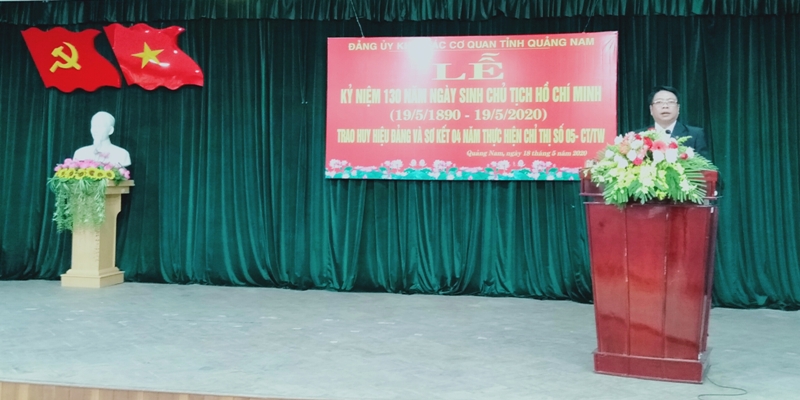Diễn văn kỷ niệm do đồng chí Bùi Võ Quảng - Bí thư Đảng ủy Khối trình bày đã ôn lại thân thế, sự nghiệp và những cống hiến, hi sinh to lớn của Chủ tịch Hồ Chí Minh đối với cách mạng Việt Nam và cách mạng vô sản của nhân loại. Đồng chí nhấn mạnh: “Trong mỗi giai đoạn cách mạng, vào thời điểm cam go, nguy hiểm nhất của lịch sử, Chủ tịch Hồ Chí Minh luôn xuất hiện đúng lúc, tháo gỡ và hóa giải một cách thần kỳ. Chính Người đã tìm ra con đường cứu nước, giải phóng dân tộc; chuẩn bị về chính trị, tư tưởng, tổ chức cho việc thành lập Đảng; sáng lập và lãnh đạo Đảng Cộng sản Việt Nam làm nên cuộc Cách mạng Tháng Tám vĩ đại, lật đổ chế độ phong kiến, lần lượt đánh bại phát xít Nhật, thực dân Pháp và đế quốc Mỹ, đưa dân tộc vượt qua mọi sự khó khăn, thử thách đi đến bến bờ vinh quang”. Đồng chí khẳng định: “Việc học tập và làm theo tư tưởng, đạo đức, phong cách Hồ Chí Minh trong những năm qua ở Đảng bộ Khối đã trực tiếp góp phần quan trọng vào việc thực hiện nhiệm vụ chính trị ở cơ quan, đơn vị; nâng cao trách nhiệm của cán bộ, đảng viên, nhất là cán bộ lãnh đạo chủ chốt các cấp; bước đầu giải quyết được một số vấn đề tiêu cực, gây bức xúc trong dư luận; chất lượng sinh hoạt chi bộ từng bước nâng cao; năng lực lãnh đạo, sức chiến đấu của tổ chức đảng và chất lượng đội ngũ cán bộ, đảng viên được giữ vững, tăng cường”. Với lòng thành kính và biết ơn vô hạn đối với Bác, đồng chí đề nghị trong thời gian tới, mỗi cấp ủy, tổ chức đảng, cán bộ, đảng viên cần xác định cho mình những nhiệm vụ, cách làm cụ thể, khoa học, phù hợp với tình hình của từng cơ quan, đơn vị và từng chức vụ, vị trí công tác; chú trọng tính hiệu quả, chiều sâu, chất lượng và tính tự giác trong việc học tập, làm theo tư tưởng, đạo đức, phong cách Hồ Chí Minh.