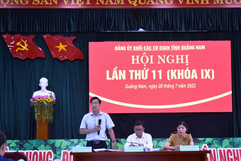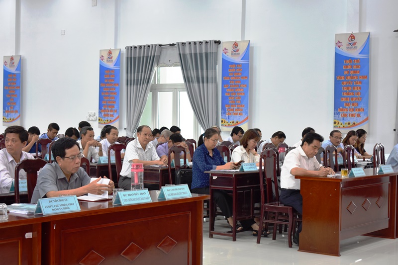 Tham dự hội nghị có đồng chí Lê Văn Dũng-Phó Bí thư Thường trực Tỉnh ủy, Trưởng đoàn đại biểu Quốc hội tỉnh Quảng Nam. Các đồng chí Thái Bình-Tỉnh ủy viên, Bí thư Đảng ủy Khối, đồng chí Nguyễn Thị Hà-Phó Bí thư Thường trực Đảng ủy Khối, đồng chí Nguyễn Xuân Đức-Phó Bí thư Đảng ủy Khối đồng chủ trì hội nghị. Cùng dự hội nghị, có các đồng chí trong BCH Đảng bộ Khối, đại diện lãnh đạo các cơ quan giúp việc Tỉnh ủy; Ủy viên UBKT Đảng ủy Khối và các đồng chí Bí thư, Phó bí thư Đảng bộ, Chi bộ trực thuộc Đảng bộ Khối.