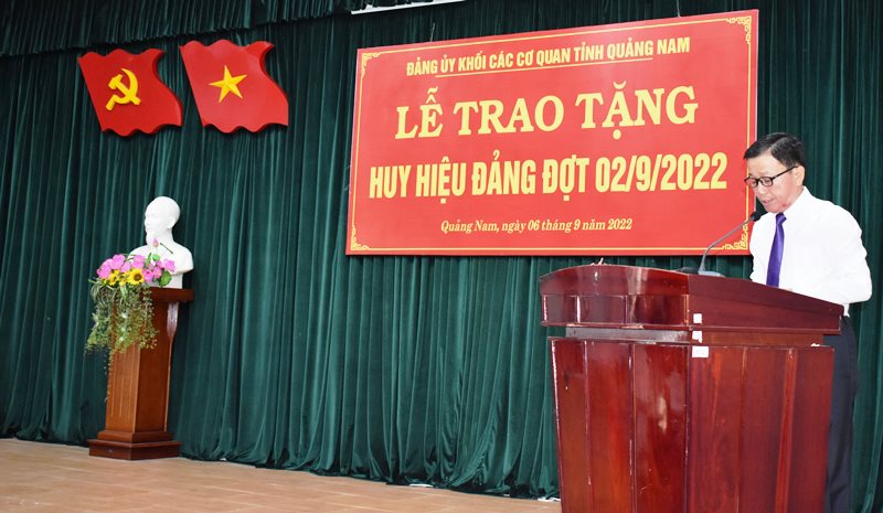 Phát biểu khai mạc, đồng chí Thái Bình – Tỉnh uỷ viên, Bí thư Đảng ủy Khối các cơ quan tỉnh ôn lại kỷ niệm 77 năm Cách mạng Tháng Tám và Quốc khánh 2/9, Ban Thường vụ Đảng ủy Khối tổ chức lễ trao tặng Huy hiệu 30 năm, 40 năm tuổi đảng cho các đồng chí đảng viên đang sinh hoạt tại Đảng bộ Khối.