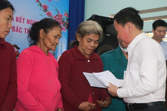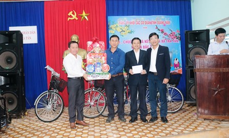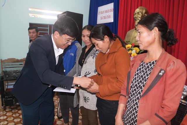 Đc Nguyễn Xuân Đức-Phó Bí thư Đảng ủy Khối trao quà Tết cho các hộ gia đình xã Trà Tân