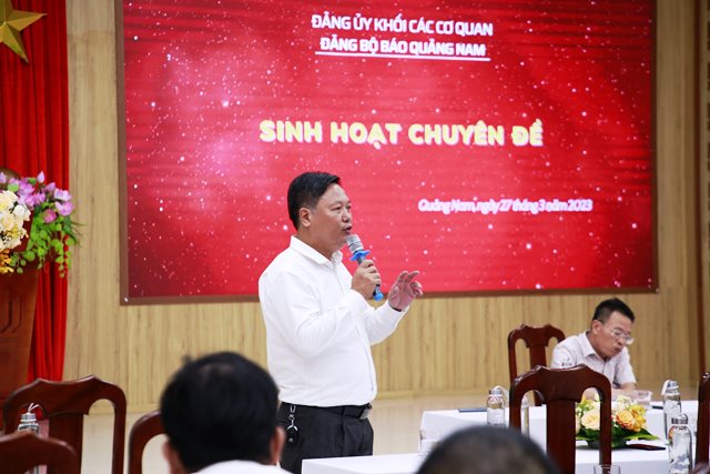 Tại buổi sinh hoạt, đồng chí Nguyễn Hữu Đổng – Phó Bí thư Đảng ủy, Phó Tổng biên tập Báo Quảng Nam nêu tư tưởng, quan điểm Chủ tịch Hồ Chí Minh và các nội dung Nghị quyết Đại hội lần thứ 13 về vấn đề văn hóa. Đồng thời khẳng định, Báo Quảng Nam tiếp tục tăng cường công tác xây dựng Đảng; phát huy dân chủ, đoàn kết và khát vọng phát triển; xây dựng Báo Quảng Nam trở thành cơ quan báo chí đa phương tiện, chuyên nghiệp, hiện đại, nhân văn, đáp ứng yêu cầu phát triển toàn diện tỉnh Quảng Nam.