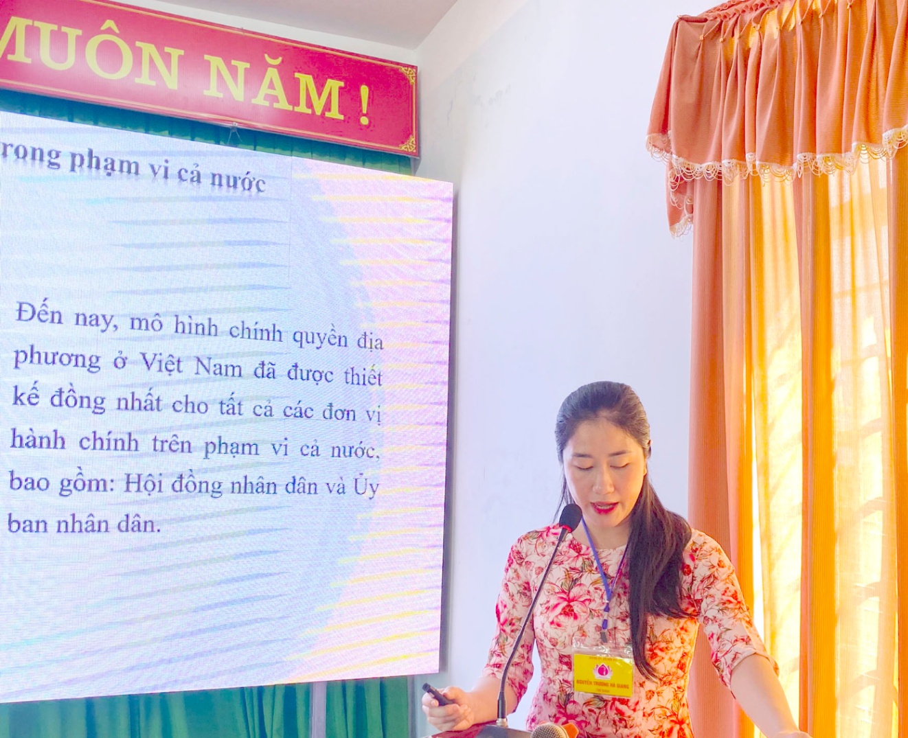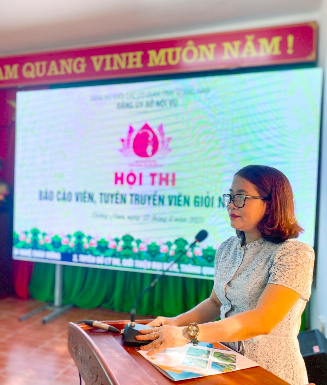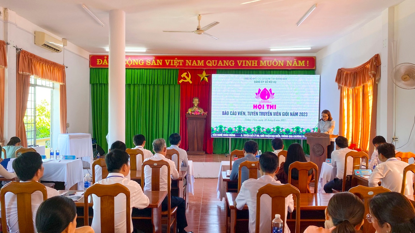 Phát biểu khai mạc Hội thi, đồng chí Trần Thị Kim Hoa, Tỉnh ủy viên, Bí thư Đảng bộ, Giám đốc Sở Nội vụ nhấn mạnh: Đây là hoạt động có ý nghĩa sâu sắc nhằm kỷ niệm 15 năm thành lập Đảng bộ Sở, là đợt sinh hoạt chính trị quan trọng, thiết thực trong toàn Đảng bộ Sở nhằm đẩy mạnh việc học tập và làm theo tư tưởng, đạo đức, phong cách Hồ Chí Minh; góp phần nâng cao chất lượng công tác xây dựng Đảng; tăng cường kỷ cương, kỷ luật hành chính; nêu cao tinh thần trách nhiệm, hiệu quả công tác trong thực thi công vụ; qua Hội thi giúp cán bộ, đảng viên liên hệ tốt thực tiễn công tác, góp phần hoàn thành tốt nhiệm vụ chính trị của cơ quan và ngành Nội vụ trong thời gian tới. Đồng thời, tạo điều kiện để đảng viên, báo cáo viên, tuyên truyền viên trong Đảng bộ Sở giao lưu, học hỏi kinh nghiệm, nâng cao trình độ, năng lực, kỹ năng thuyết trình, tuyển chọn báo cáo viên, tuyên truyền viên giỏi để tham gia các hội thi do các cấp tổ chức, đồng thời giúp các cấp ủy chi bộ, Đảng ủy Sở xây dựng kế hoạch đào tạo, bồi dưỡng, kiện toàn đội ngũ báo cáo viên, tuyên truyền viên trong tương lai.