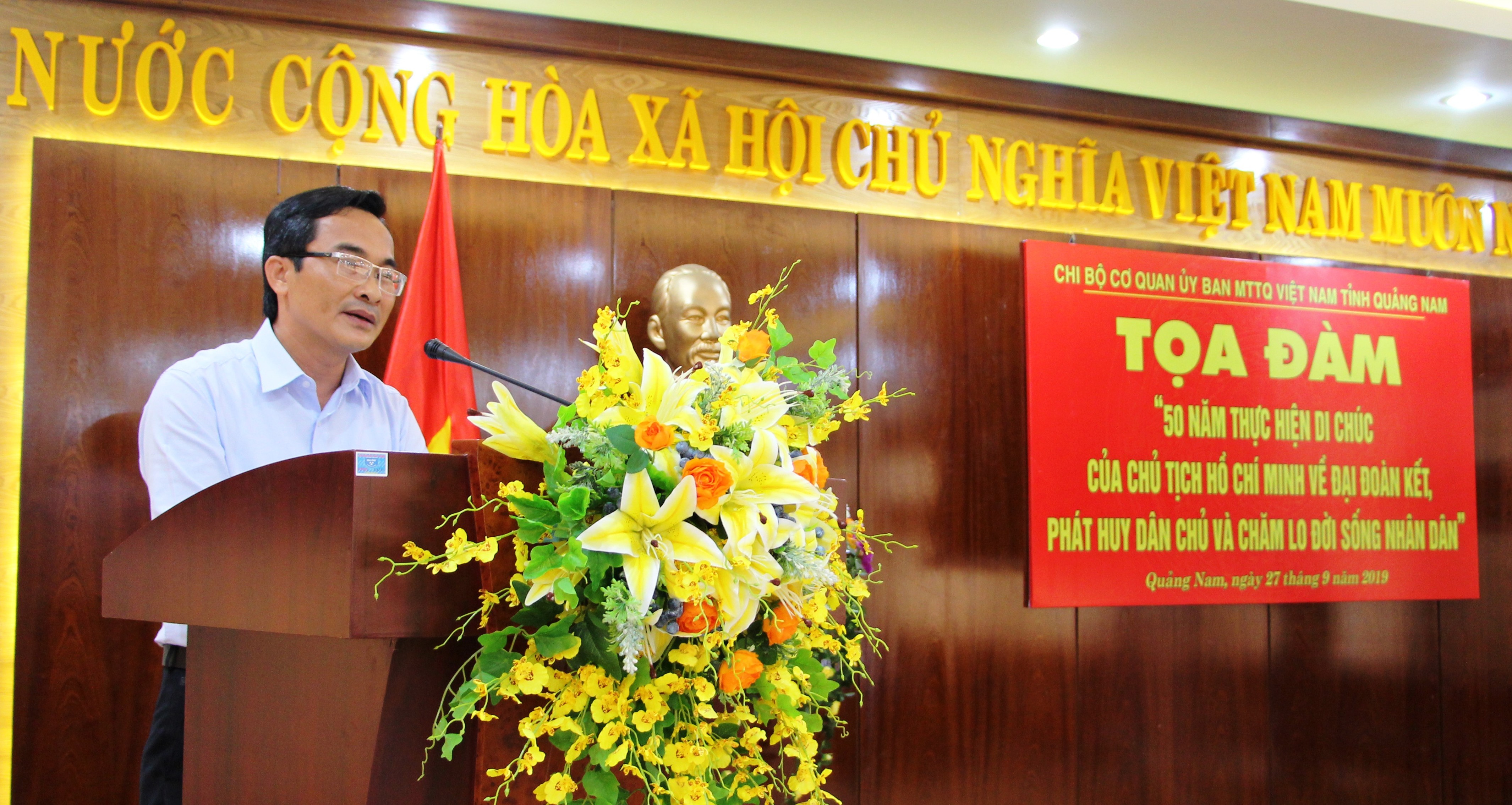 Ba tham luận và 15 lượt ý kiến thảo luận, kết luận, buổi tọa đàm đã làm rõ nội dung chủ đề về đại đoàn kết, phát huy dân chủ, chăm lo đời sống Nhân dân và rút ra những giá trị cốt lõi về lý luận, thực tiễn đối với công tác Mặt trận trong thời gian qua cũng như giai đoạn hiện nay. Đây cũng là cơ sở để đưa hoạt động của Ủy ban MTTQ Việt Nam tỉnh ngày càng đi vào thực chất, hiệu quả trong việc phát huy sức mạnh đại đoàn kết toàn dân tộc, hưởng ứng các phong trào thi đua yêu nước, tuyên truyền, vận động Nhân dân phát huy dân chủ, tích cực tham gia xây dựng Đảng, xây dựng chính quyền và chăm lo đời sống Nhân dân bằng các hoạt động đền ơn đáp nghĩa, chăm lo người nghèo, cứu trợ thiên tai, bão lũ…