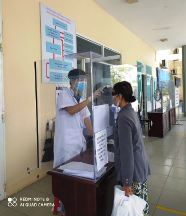 Sau khi được kiểm tra thông tin khai báo y tế, đo nhiệt độ, nếu không có dấu hiệu nghi ngờ bệnh nhân sẽ được đóng dấu đã kiểm tra y tế là được chuyển vào phòng khám để tiếp tục thực hiện việc khám bệnh.