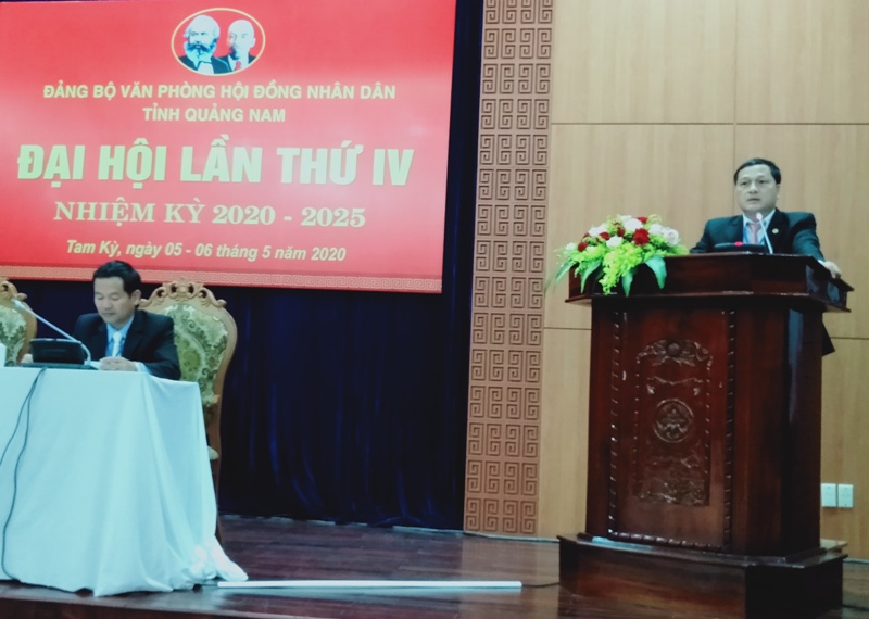 Phát biểu chỉ đạo đại hội, đồng chí Nguyễn Phước Sơn - Phó Bí thư Đảng ủy Khối ghi nhận và đánh giá cao kết quả lãnh đạo thực hiện nhiệm vụ chính trị cũng như công tác xây dựng Đảng của Đảng bộ Văn phòng HĐND tỉnh đạt được trong nhiệm kỳ qua. Đồng chí đề nghị trong thời gian tới, Đảng bộ Văn phòng HĐND tỉnh tiếp tục lãnh đạo cán bộ, đảng viên, quần chúng nâng cao chất lượng tham mưu, đề xuất, giúp các Ban, Văn phòng của HĐND, Thường trực HĐND và HĐND tỉnh đề ra các chủ trương, chính sách và giải pháp phù hợp để thúc đẩy phát triển kinh tế, xã hội, quốc phòng, an ninh tỉnh nhà; đồng thời, chăm lo xây dựng Đảng trong sạch, vững mạnh cả về chính trị, tư tưởng, tổ chức và đạo đức. Về nhiệm vụ đại hội, đồng chí yêu cầu cán bộ, đảng viên phát huy tinh thần trách nhiệm, tập trung trí tuệ, bầu ra cấp ủy, ban thường vụ và các chức danh lãnh đạo cấp ủy khóa mới đủ sô lượng, đảm bảo tiêu chuẩn, chất lượng để cụ thể hóa và tổ chức thực hiện thành công Nghị quyết Đại hội Đảng bộ Văn phòng HĐND tỉnh lần thứ IV; bầu ra đoàn đại biểu đi dự đại hội đảng bộ cấp trên đủ số lượng và thực sự là đại diện tiêu biểu cho trí tuệ của toàn đảng bộ.