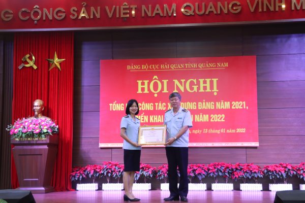 Với những kết quả đạt được trong công tác xây dựng Đảng năm 2021, Đảng bộ Cục Hải quan tỉnh Quảng Nam đã được Ban Thường vụ Đảng ủy Khối các cơ quan tỉnh Quảng Nam xếp loại Hoàn thành xuất sắc nhiệm vụ. Dịp này, Đảng bộ Cục Hải quan tỉnh Quảng Nam đã tặng Giấy khen cho tập thể Chi bộ Văn phòng và 08 đảng viên Hoàn thành xuất sắc nhiệm vụ năm 2021.
