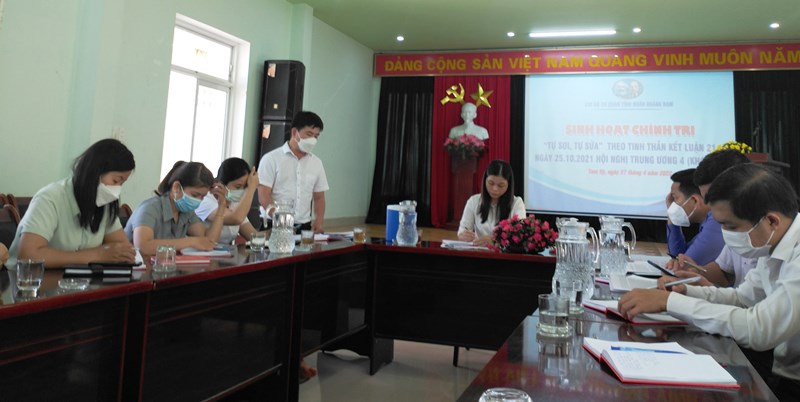 Sau khi nghe báo cáo “Tự soi, tự sửa” về công tác xây dựng, chỉnh đốn Đảng và hệ thống chính trị của Chi bộ cơ quan Tỉnh đoàn và đồng chí Phạm Thị Thanh – Bí thư Chi bộ. Các đồng chí đảng viên trong chi bộ tập trung thảo luận với 7 ý kiến tham gia phát biểu, các ý kiến cơ bản nhất trí với việc “tự soi, tự sửa” của cấp ủy chi bộ và người đứng đầu cấp ủy; đồng thời trao đổi về những vấn đề còn tồn tại, hạn chế để cùng nhau khắc phục trong thời gian tới.