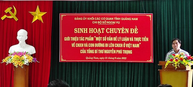 Tại buổi sinh hoạt, đồng chí Kiều Duy Khánh-Giảng viên chính Trường Chính trị tỉnh đã giới thiệu khái quát những nội dung cơ bản của tác phẩm “Một số vấn đề lý luận và thực tiễn về Chủ nghĩa Xã hội và con đường đi lên Chủ nghĩa Xã hội ở Việt Nam” của Tổng Bí thư Nguyễn Phú Trọng”. Theo đó, tác phẩm được Tổng Bí thư Nguyễn Phú Trọng viết nhân dịp kỷ niệm 131 năm Ngày sinh Chủ tịch Hồ Chí Minh (19/5/1890-19/5/2021), bầu cử Đại biểu Quốc hội khóa XV và đại biểu Hội đồng nhân dân các cấp nhiệm kỳ 2021-2026. Tác phẩm được đăng lần đầu tiên trên Báo Nhân dân vào ngày 15/5/2021, gồm 29 bài báo cáo.
