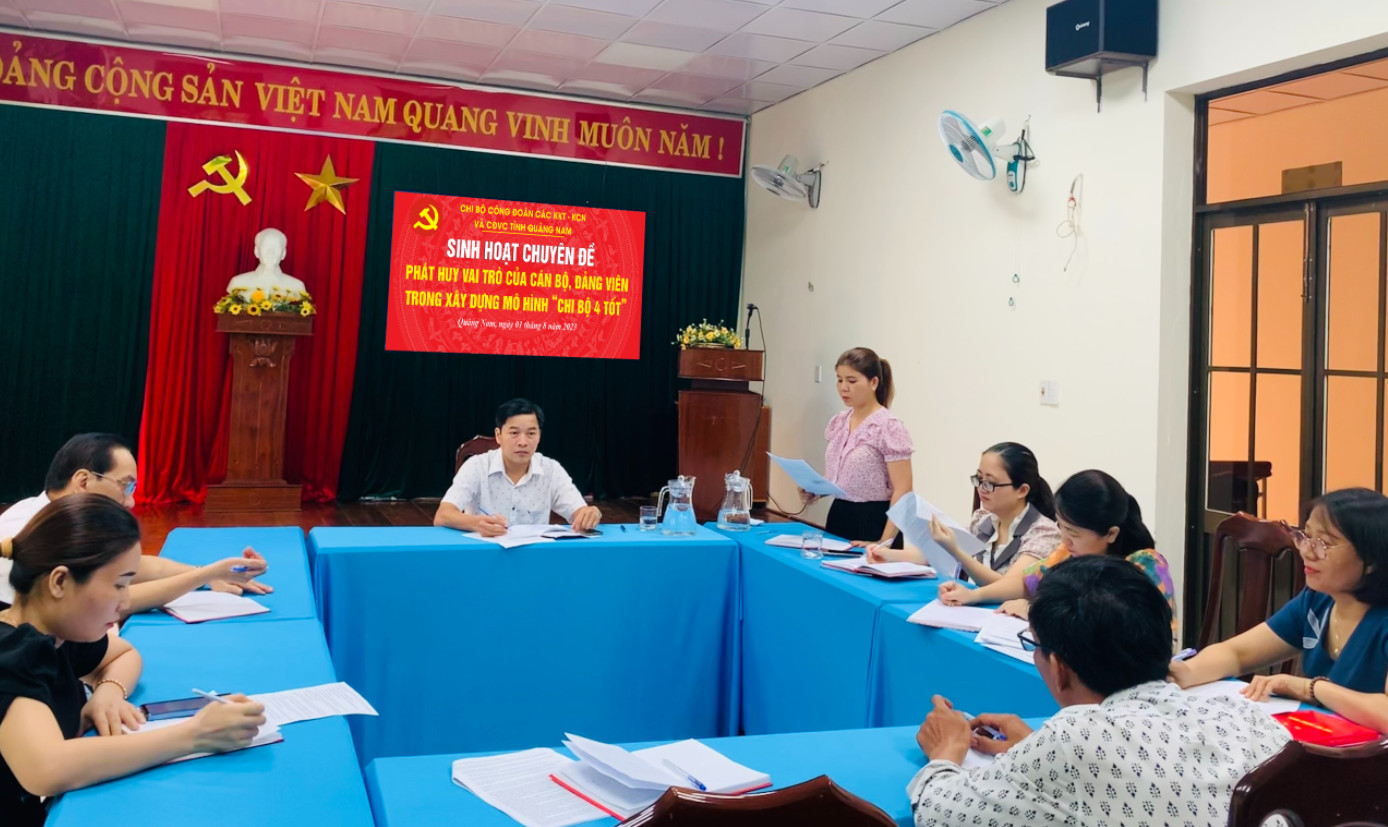 Tại buổi sinh hoạt, đảng viên Chi bộ đã thể hiện tinh thần trách nhiệm, thảo luận sôi nổi, thẳng thắn về những nội dung, tiêu chí xây dựng “Chi bộ 4 tốt”, cụ thể như: lãnh đạo hoàn thành tốt nhiệm vụ chính trị; chất lượng sinh hoạt tốt; xây dựng chi bộ đoàn kết, kỷ luật tốt; xây dựng cán bộ, đảng viên tốt. Phát biểu tại buổi sinh hoạt, đồng chí Trần Quốc Bảo, Bí thư Chi bộ đã ghi nhận, đánh giá cao việc chủ động học tập, nghiên cứu sinh hoạt chuyên đề của Chi bộ; đồng thời bổ sung, định hướng, gợi mở làm rõ thêm một số nội dung giúp đảng viên nhận thức, xác định đúng vấn đề, nội dung, tiêu chí xây dựng “Chi bộ 4 tốt” theo quan điểm của Đảng, tư tưởng Hồ Chí Minh; gắn với nhiệm vụ chính trị của Chi bộ và nhiệm vụ của từng đảng viên. Đồng chí nhấn mạnh: việc xây dựng “Chi bộ 4 tốt” là nhiệm vụ thường xuyên, lâu dài của công tác xây dựng Đảng; đảng viên trong Chi bộ cần tiếp tục chủ động, tích cực học tập tư tưởng Hồ Chí Minh, xây dựng đoàn kết trong nội bộ, nâng cao chất lượng trong sinh hoạt Đảng, phấn đấu hoàn thành tốt nhiệm vụ được giao.