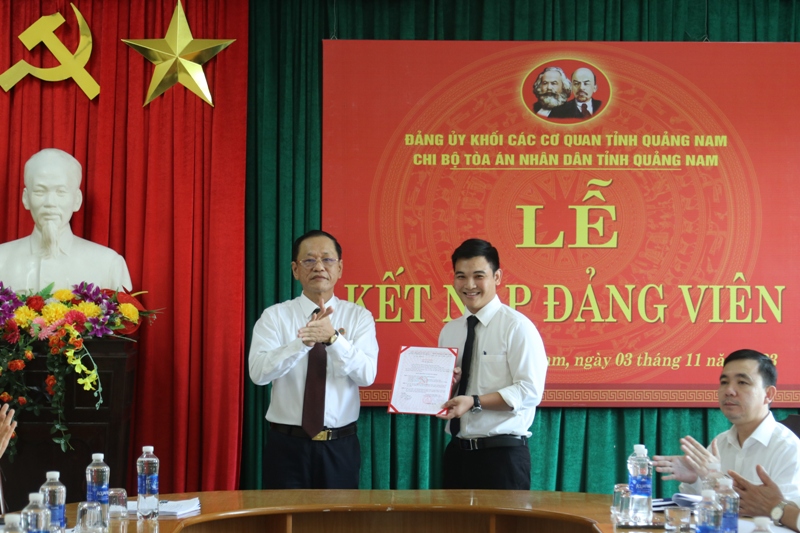 Đồng chí Nguyễn Thành Đạt, sinh năm 1998; quê quán: xã Bình Dương, huyện Thăng Bình, tỉnh Quảng Nam; là sinh viên khóa đầu tiên của Học viện Tòa án, được Tòa án nhân dân tối cao tuyển dụng và phân công công tác tại Tòa án nhân dân tỉnh từ ngày 01/4/2021 đến nay. Trong quá trình công tác, đồng chí Nguyễn Thành Đạt luôn hoàn thành tốt nhiệm vụ chuyên môn, là nhân tố nổi bật trong phong trào của các đoàn thể. Năm 2022, 2023, đồng chí Nguyễn Thành Đạt được Chánh án Tòa án nhân dân tỉnh công nhận danh hiệu “Chiến sĩ thi đua cơ sở” và đề nghị Chánh án Tòa án nhân dân tối cao tặng Bằng khen. Đồng chí Trần Thế Cẩm, Bí thư Chi bộ, Phó Chánh án Tòa án nhân dân tỉnh đã chúc mừng, trao quyết định kết nạp và giao nhiệm vụ cho đồng chí Nguyễn Thành Đạt. Chi bộ Tòa án nhân dân tỉnh mong muốn lực lượng đảng viên trẻ không ngừng học tập, rèn luyện, trao dồi đạo đức, lý tưởng cách mạng, đạo đức nghề nghiệp, phấn đấu vì sự nghiệp cách mạng, góp phần xây dựng Chi bộ Tòa án nhân dân tỉnh ngày càng vững mạnh, phát triển.