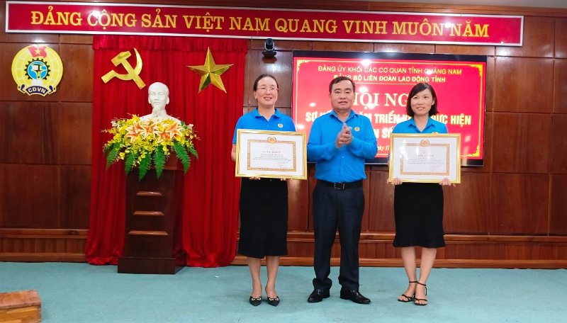 Đ/c Phan Xuân Quang - Bí thư Đảng ủy LĐLĐ tỉnh trao Giấy khen