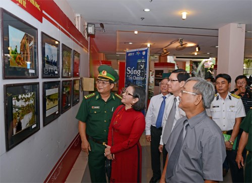 Các đại biểu dự khai mạc và tham quan triển lãm về Bộ đội Cụ Hồ, do Ban Tuyên giáo Thành ủy TP Hồ Chí Minh phối hợp với Hội Nhiếp ảnh Thành phố tổ chức. Ảnh: Xuân Cường