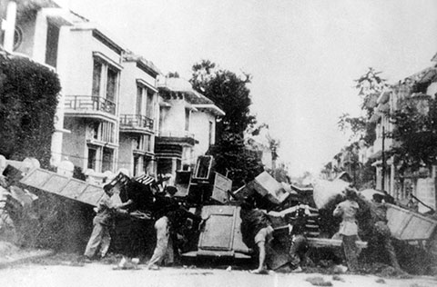 Nhân dân phố Mai Hắc Đế, Hà Nội dựng chướng ngại vật chặn bước tiến của quân Pháp trong ngày đầu toàn quốc kháng chiến, tháng 12-1946