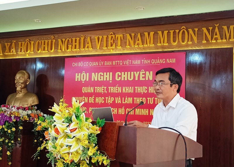 Năm 2022, Chi bộ cơ quan Ủy ban MTTQ Việt Nam tỉnh xác định việc học tập và làm theo tư tưởng, đạo đức, phong cách Hồ Chí Minh gắn với tự phê bình và phê bình theo tinh thần Nghị quyết Trung ương 4 khóa XI, khoá XII và Kết luận số 21-KL/TW, ngày 21/5/2021 của Ban Chấp hành Trung ương Đảng khoá XIII về đẩy mạnh xây dựng, chỉnh đốn Đảng và hệ thống chính trị; kiên quyết ngăn chặn, đẩy lùi, xử lý nghiêm cán bộ, đảng viên suy thoái về tư tưởng chính trị, đạo đức, lối sống, biểu hiện “tự diễn biến”, “tự chuyển hoá” là nhiệm vụ chính trị trọng tâm góp phần xây dựng Chi bộ trong sạch, vững mạnh; lãnh đạo, chỉ đạo cán bộ, đảng viên cơ quan thực hiện và hoàn thành xuất sắc nhiệm vụ được giao.