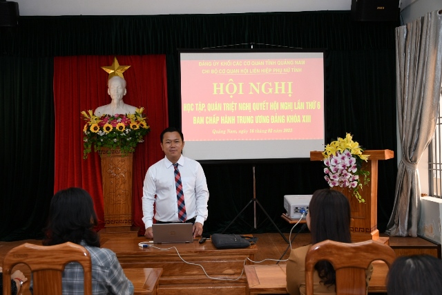 TTại Hội nghị, đại biểu được nghe báo cáo viên Trần Ngọc Nhiều-Thạc sỹ, Giảng viên chính Khoa Lý luận cơ sở Trường chính trị tỉnh Quảng Nam báo cáo viên, quán triệt, học tập các chuyên đề: Tiếp tục xây dựng và hoàn thiện Nhà nước pháp quyền xã hội chủ nghĩa Việt Nam trong giai đoạn mới; Tiếp tục đổi mới phương thức lãnh đạo, cầm quyền của Đảng đối với hệ thống chính trị trong giai đoạn mới; Tiếp tục đẩy mạnh công nghiệp hóa, hiện đại hóa đất nước đến năm 2030, tầm nhìn đến năm 2045; Định hướng Quy hoạch tổng thể quốc gia thời kỳ 2021-2030, tầm nhìn 2045.