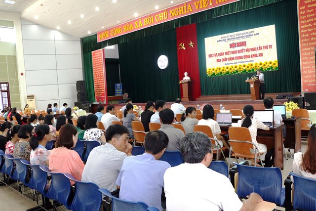 Hội nghị học tập, quán triệt Nghị quyết nhằm giúp cán bộ, đảng viên Trường Đại học Quảng Nam nắm vững nội dung cốt lõi Nghị quyết Hội nghị lần thứ 5, BCH TW Đảng (khóa XIII) và góp phần đưa Nghị quyết của Đảng đi vào cuộc sống.