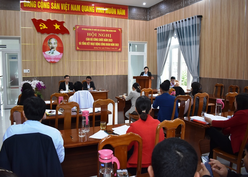 Hội nghị đã thông qua báo cáo kết quả thực hiện nghị quyết hội nghị cán bộ công chức năm 2022, theo đó tình hình dịch bệnh Covid-19 còn bị ảnh hưởng nặng nề những tháng đầu năm, tình hình giá cả tăng cao, ảnh hưởng đến đời sống cán bộ công chức và người lao động, ...mặc dù vậy nhưng tập thể lãnh đạo cơ quan Đảng ủy Khối đã đoàn kết thống nhất, làm tốt công tác tư tưởng, sắp xếp ổn định công tác cán bộ; lãnh đạo cán bộ, đảng viên nêu cao tinh thần trách nhiệm, triển khai thực hiện tốt nhiệm vụ chính trị cũng như công tác xây dựng Đảng, có nhiều cách làm mới trong tuyên truyền, triển khai khai nghị quyết; tổ chức thành công tọa đàm về xây dựng Đảng; tích cực tham mưu công tác phát triển đảng viên mới đạt chỉ tiêu đề ra, kết luận chính trị số lượng lớn, tăng cường làm việc nắm tình hình cơ sở, đổi mới phương pháp kiểm tra đánh giá xếp loại tổ chức đảng, tích cực tổ chức các hoạt động kỷ niệm 60 năm thành lập Đảng bộ Khối...góp phần tích cực vào công tác xây dựng Đảng của Đảng bộ Khối.