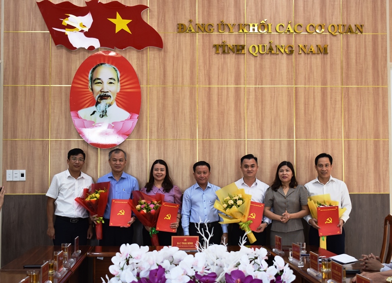 Đồng chí Thái Bình-Bí thư Đảng ủy Khối, cùng các đồng chí Thường trực Đảng ủy Khối tặng hoa chúc mừng các đồng chí UVBCH, UVBTV Đảng ủy Khối các cơ quan tỉnh