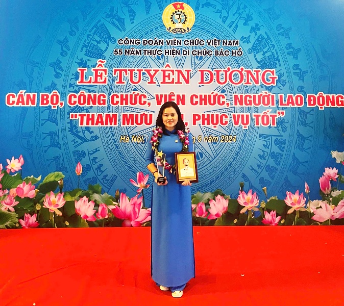 Trong số 150 cán bộ, công chức, viên chức, người lao động được vinh danh, đoàn viên Lê Thị Hoa Phượng - Chuyên viên chính Ban Tổ chức - Kiểm tra, Liên đoàn Lao động tỉnh Quảng Nam vinh dự được tuyên dương.